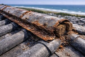 これらの地域では、通常の鉄製釘では5〜7年で錆びが発生し、10年で固定力が50%以下に低下します。特に南風が強い春〜夏季(4月〜8月)は、1日あたり約0.3gの塩分が1㎡の屋根に付着すると言われています。