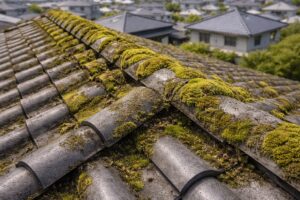 袋井市は温暖湿潤気候であり、夏季は高湿度でジメジメした環境になります。年間平均湿度は70%以上で、特に梅雨時期(6月〜7月)は湿度80%を超える日が続きます。この高湿度環境により、屋根北面や日陰部分には苔・カビが発生しやすく、屋根材の劣化が加速します。苔が繁殖すると屋根材の表面に水分が滞留し、防水性能が低下して雨漏りリスクが高まります。