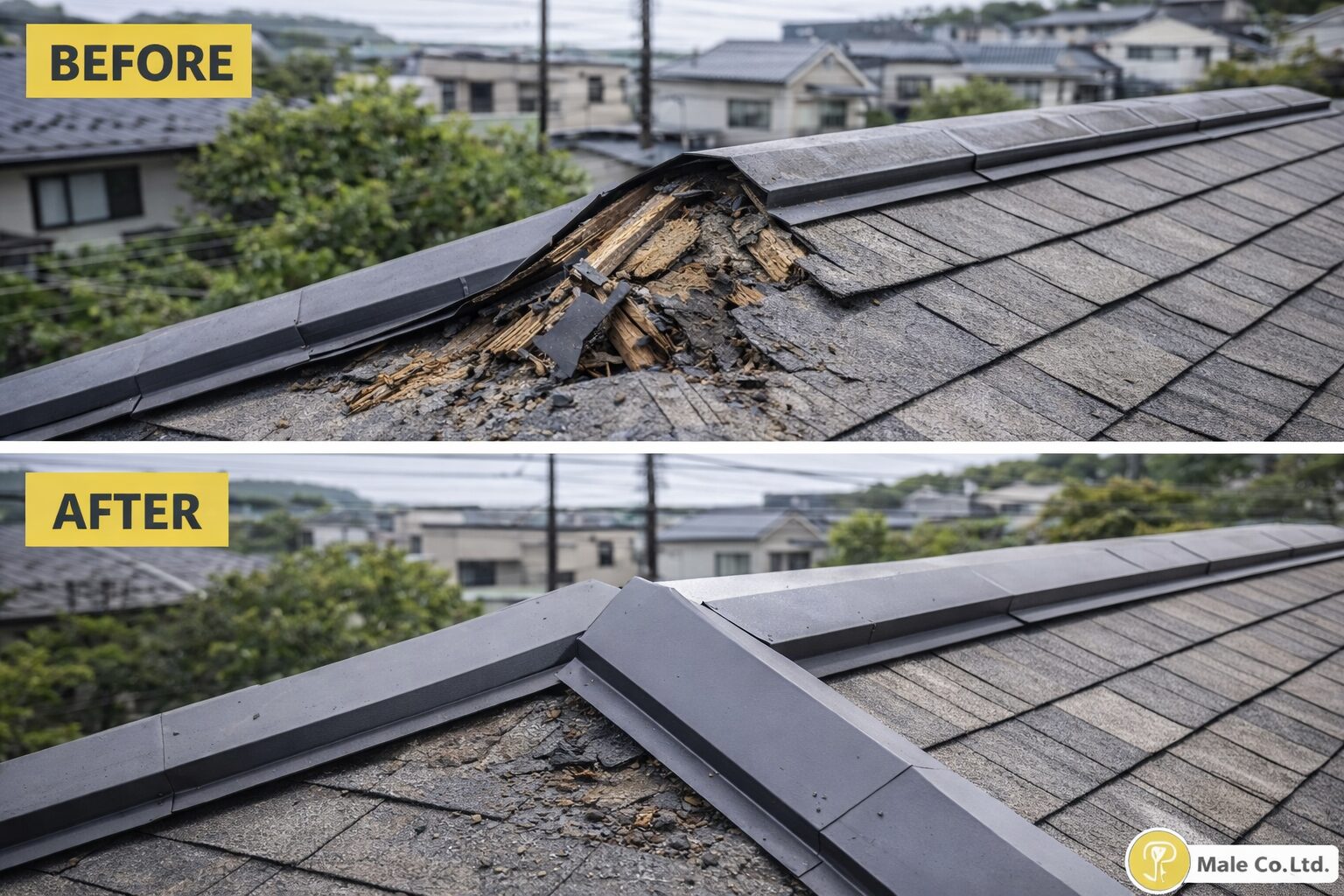 ただし、築年数が古くても、台風で一気に屋根が損傷した場合は風災として認定されるケースが多いため、まずは申請してみることが重要です。Maleでは、保険会社との交渉実績が豊富で、「経年劣化か風災か」の微妙なケースでも保険金を引き出すノウハウを持っています。過去に「経年劣化」で保険会社に一度断られたお客様でも、Maleの再交渉で保険金が下りた事例が多数あります。