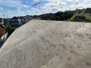 下地(野地板・防水シート)が劣化しているため、葺き替えで全交換が必要